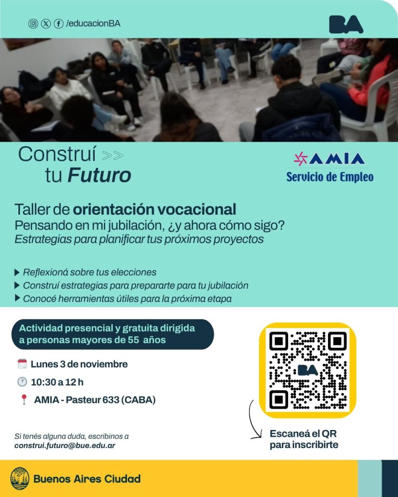 Participá de “Pensando en mi jubilación, ¿y ahora cómo sigo?”, un taller presencial y gratuito dirigido a personas mayores de 55 años que se encuentran planificando su futuro laboral o personal.